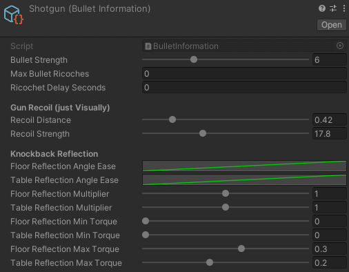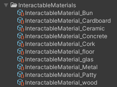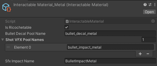 Every Interactable (shootable) object in the game has an „Interactable Material“ scriptable object. They define the following: