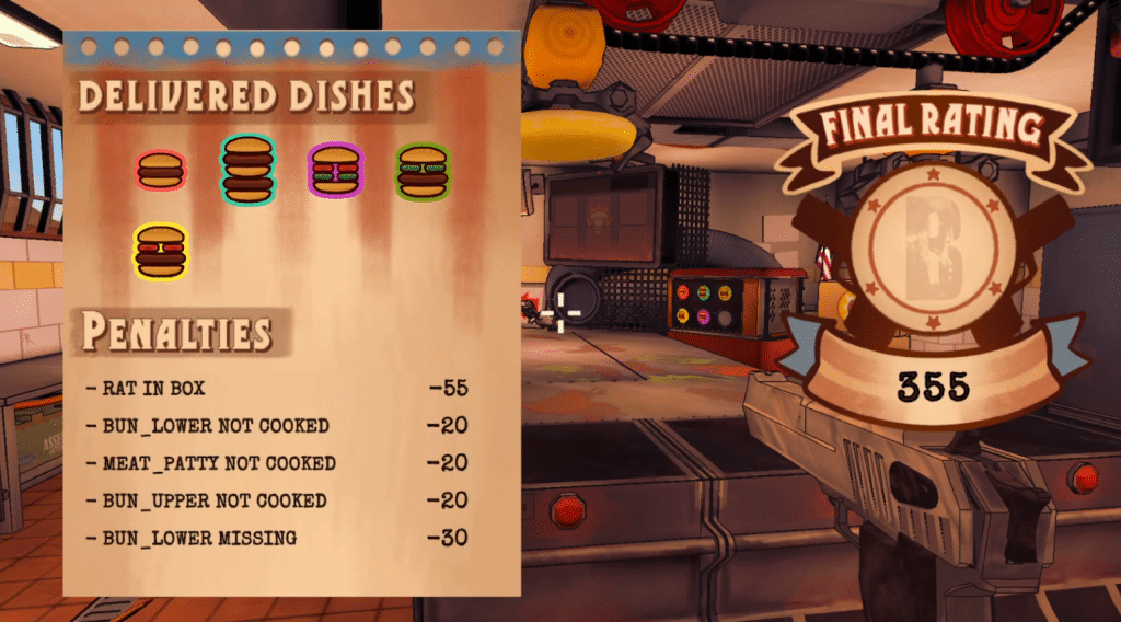 Shift Rating: This is the final rating shown at the end of the shift. It summarizes all the mistakes made throughout the shift, calculates the penalty values for each mistake, and deducts them from the maximum achievable score (combined from all orders).