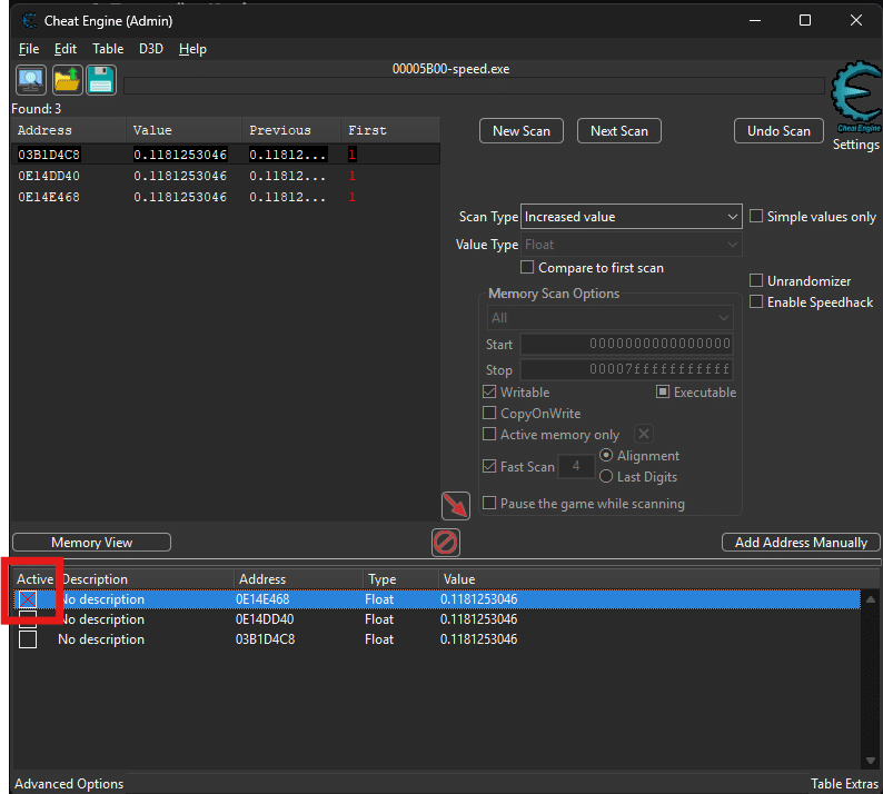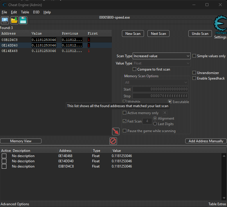 And its fairly easy to find that address. With CheatEngine active you can find specific address-values by repetitively changing the value and filtering the results by just searching for e.g. increased values relative to the last results.